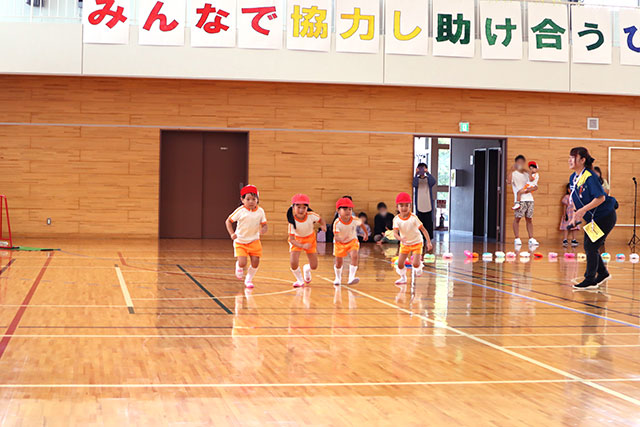クラスごとの『かけっこ』。「負けないぞ!」という気持ちが伝わってくるほど、力を振り絞った子ども達。嬉しさで笑っている子、悔しがっている子などさまざまな様子が見られました!