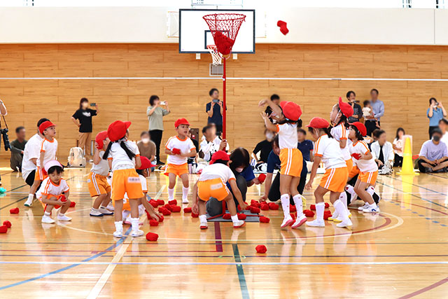各クラス合同で行った『玉入れ』。相手より少しでも多く玉を入れようと、チームで力を合わせて頑張りました!!