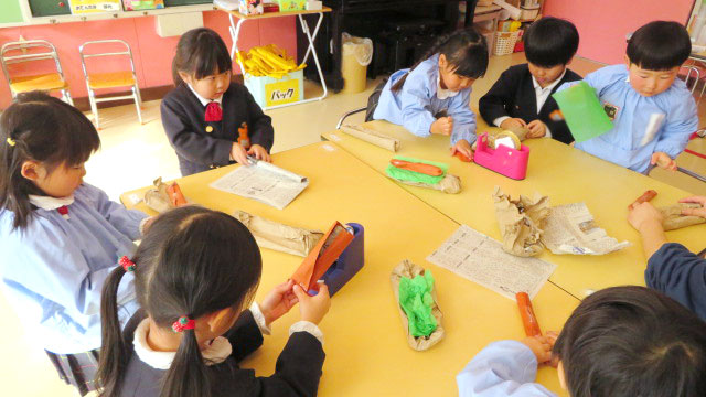 楽しみにしていた年長さんのお泊まり会。1日目はカレー作り、松山のプールへ行き、夕食(カレー)、スイカ割り、花火そしてミニ縁日がありました。